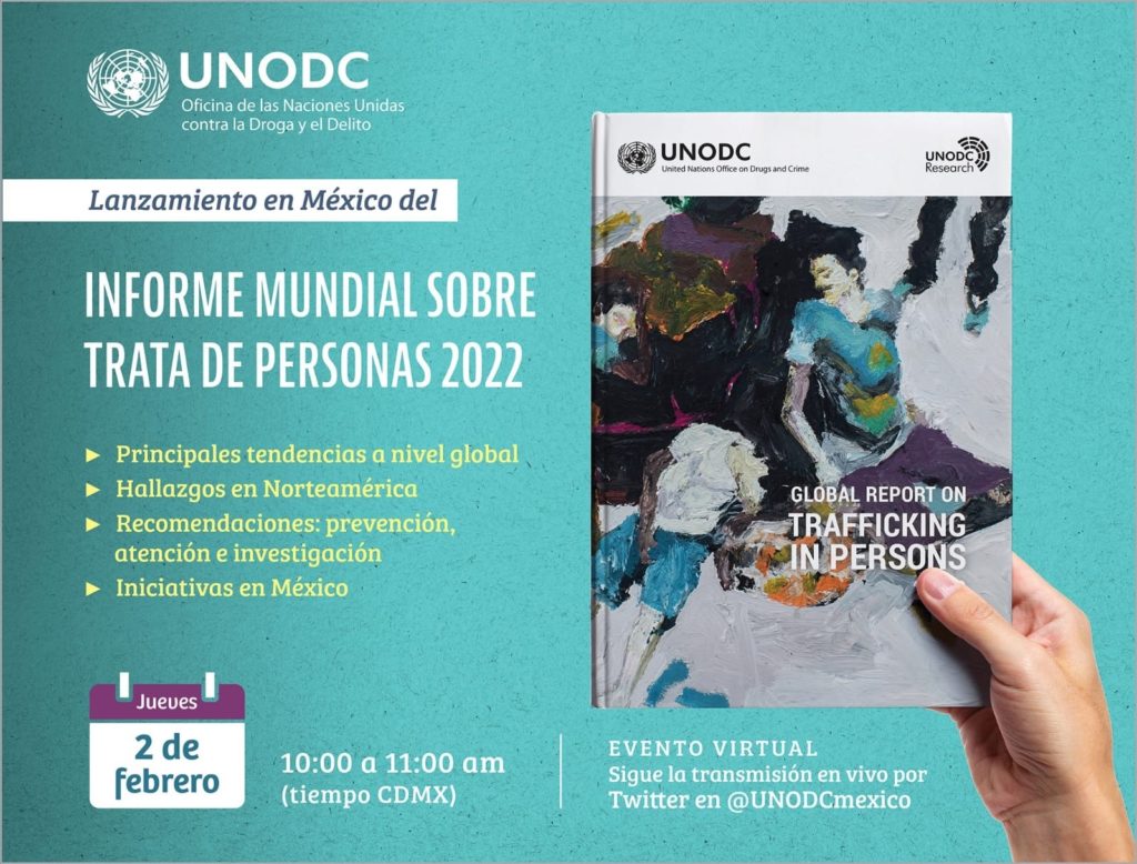 Informe UNODC sobre trata de personasPor Adán Larracilla Márquez / 30 enero, 2023 Hola, #Agéndalo y comparte Lanzamiento en México del Informe Mundial sobre Trata de Personas 2022📆02 de febrero⌚10:00 hrs CDMX💻#EnVivo desde Twitter @UNODCmexicoInformes Lic. Huri Vilchis 55 8559 55 51 en horas hábiles