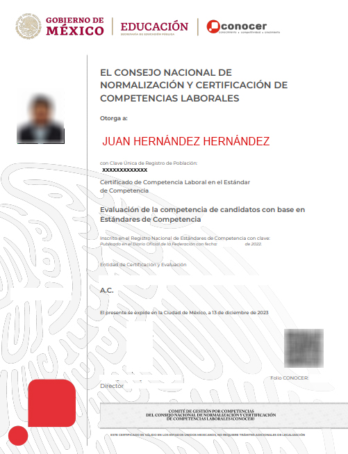 Es el reconocimiento formal de los conocimientos, habilidades y destrezas personales para sus competencias laborales. La certificación se otorga a través de una entidad de certificación y evaluación, integrada con personal certificado y con amplia experiencia en los procesos de administración, capacitación, evaluación y certificación de competencias laborales.